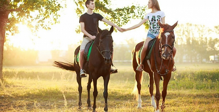 Если вы являетесь любителем активного отдыха на свежем воздухе, то вам обязательно понравится конная прогулка для двоих по полям или лесу совсем недалеко от Санкт-Петербурга. Отправляйтесь на отдых со своей второй половинкой. Такой отдых приятен как летом, так и зимой. В жаркий знойный день нет ничего лучше, чем отправиться под тень листвы, чтобы покататься на лошадях и вдохнуть свежего чистого воздуха. В зимнее время верховая езда привлекает не меньше.